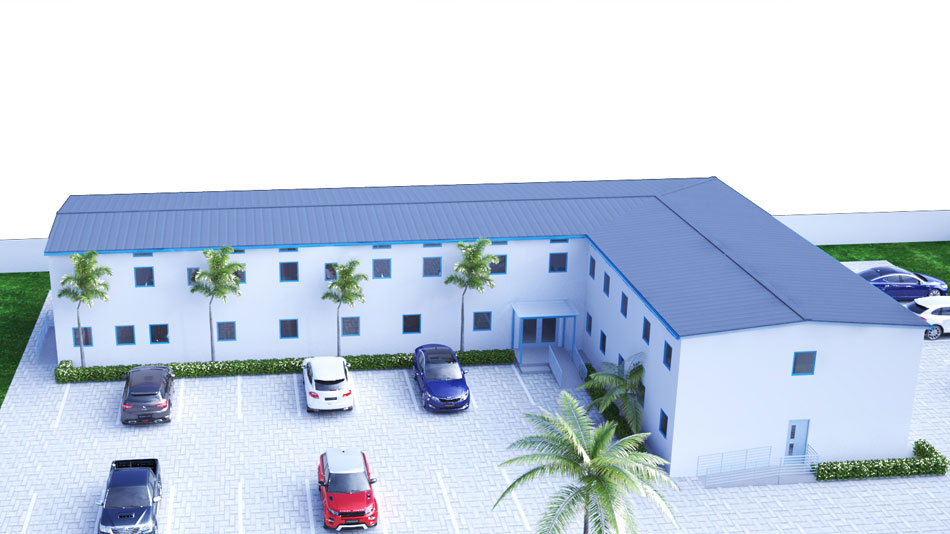This office is a modern two-storey office building for the Ghana Irrigation Development Authority. a sub vented agency of the Ministry of Food and Agriculture. Located in the airport residential hub of Acca, it covers an approximate area of 1000 square meters. The purpose of the structure is to accommodate administrative activities of the Agency. The superstructure was designed to be constructed with prefabricated PVC wall panels. The construction methodology was borne out of the desire of the Client to complete the structure in a very short period to allow for relocation. The building was oriented on the North-South axis and this made it possible for offices to be well lit with excellent ventilation, views, controlled daylightIng.