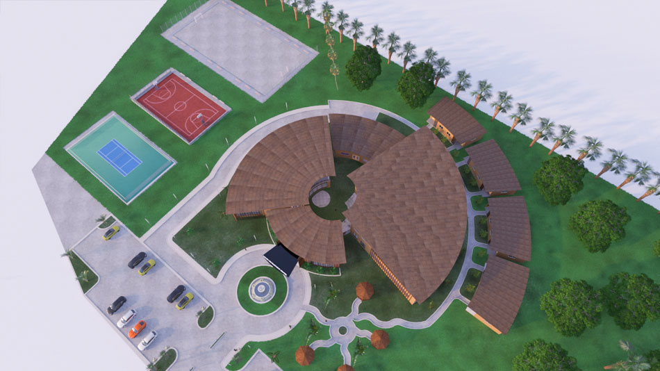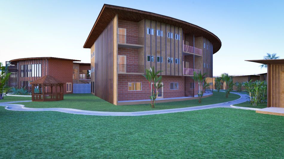 This concept design offers a solution to a client who desire to build a development center for training young women and girls in leadership and other relevant 21st century goals. The land is located in the Eastern Region of Ghana and a reclaimed illegal mining land. The design employs the use of local material such as wood and bricks which are readily available in the area. The project has structures for administrative, accommodation, academic and recreational purposes. It is expected to give a participant a holistic experience and carefully designed to promote collaboration amongst members. Views from the mountains close to the site are explored by the opening up windows and balconies of the accommodation block in that direction.